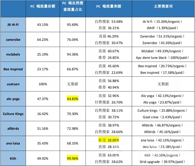 首先,中国的移动互联网渗透率极高,各个层级、各个年龄段的用户都习惯了以手机为互联网入口,以移动APP为主要购物场景。相比之下,发达国家的PC上网用户还很多,在移动端使用浏览器拜访网站的习惯也根深蒂固。要知道,APP的获客成本比网站高得多,形成用户黏性的难度也高得多。从下表可以看到,欧美的头部独立站,至今仍有约一半的流量来自PC端;我们可以推断,它们的移动端流量也是大部分来自浏览器(网站)而非APP。