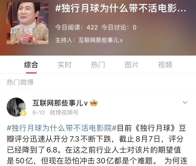 《独行月球》热映之时,微博上曾经出现过一个热搜“独行月球为什么带不活电影院”,只因为它没有冲击业内人士期待的50亿票房。无论是《独行月球》还是《流浪地球2》,让任何一部电影担负“救市”使命,都会成为不堪承受之重。