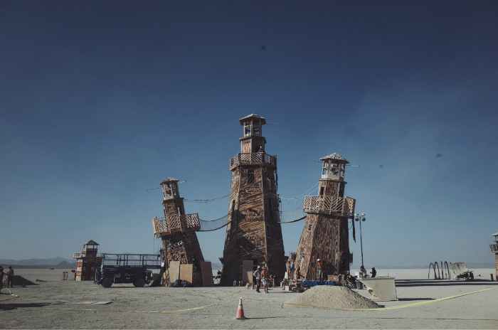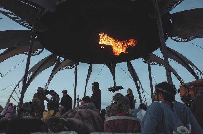 主营地上巨大的木人,会在火人节结束前的周六晚上,被一把大火烧掉。这是火人节最重要的仪式。▼
