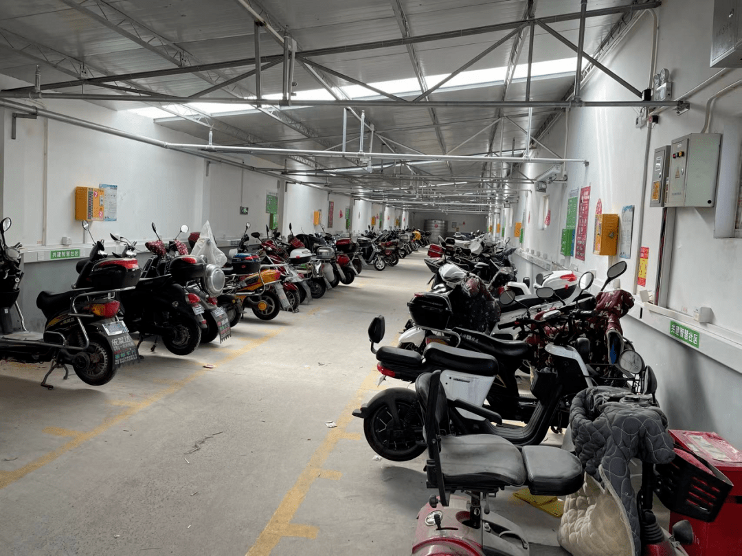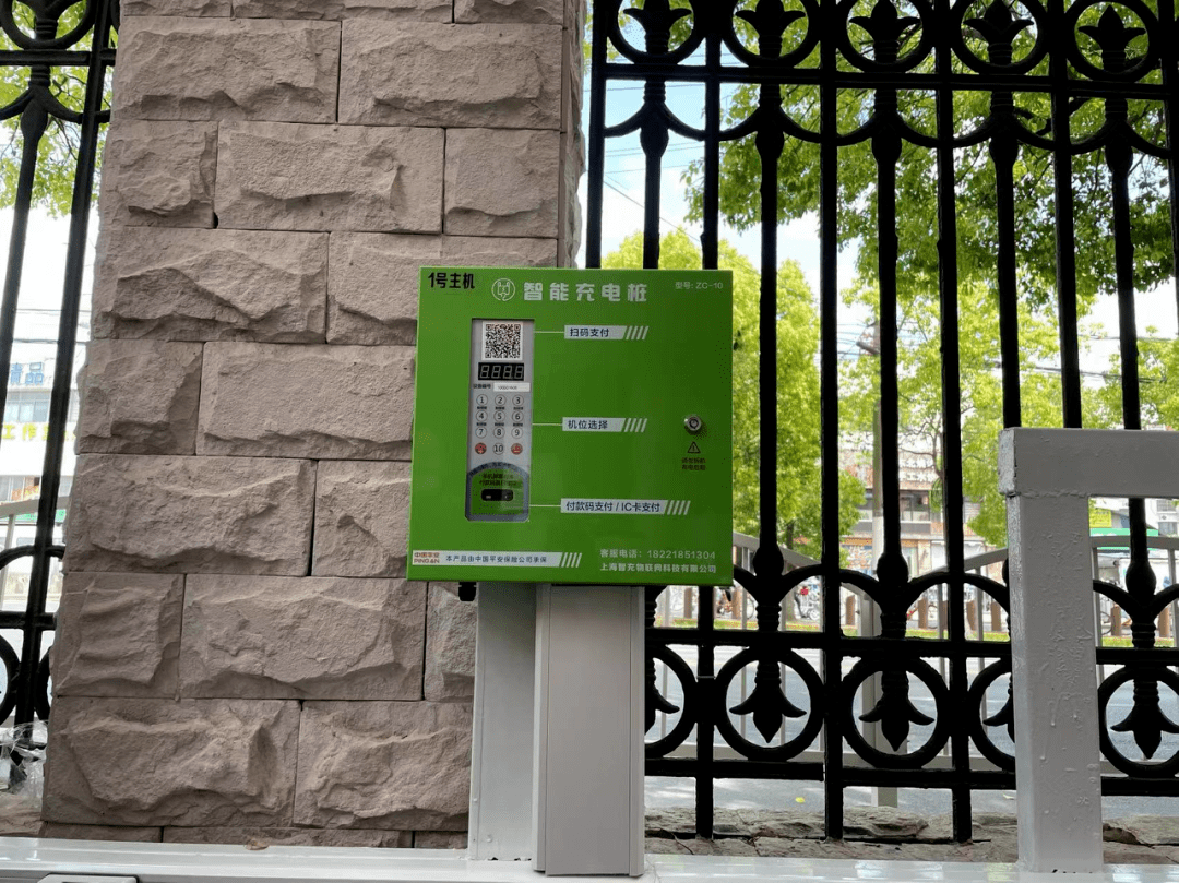 老旧小区常存在小区设施老化、功能配套不足、场地受限等因素引起的充电难题。在宝山区大场镇乾龙苑就存在这样的现象,小区内有电动自行车约330辆,仅配有1个地面非机动车库,至多供约160辆电动自行车充电。大场镇在走访排查中了解到该情况后,高度重视,既解决日常充电难困境,又建立智能与安全并行的便民设施。采用改造扩建地面停车库,以及开发4处室外充电场所,安装11台充电桩主机,引入室外充电桩、充电柱、充电柜等衍生充电模式,可额外满足106辆电瓶车充电,目前基本覆盖小区80%的充电需求。同时,为便利居民操作,选择既可使用传统IC卡、微信和支付宝支付,又可在地下无信号场所反扫付款码充电的系统,以及为降低火灾风险,安装烟感、简易喷淋灭火设施,增配干粉灭火器。