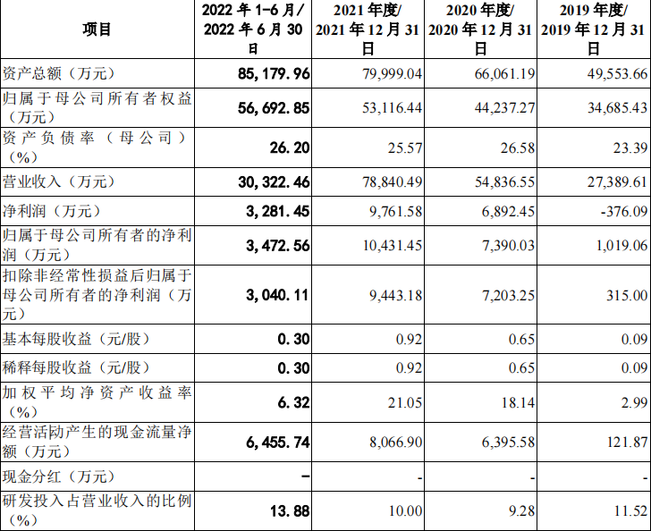 公司是一家综合型制药企业,主要从事高端肠外营养制剂及多品类化学药品的研发、生产及销售。公司于2019年、2020年、2021年及2022年上半年分别实现营业收入2.74亿元、5.48亿元、7.88亿元及3.03亿元;分别实现归母净利润1019.06万元、7390.03万元、1.04亿元及3472.56万元。