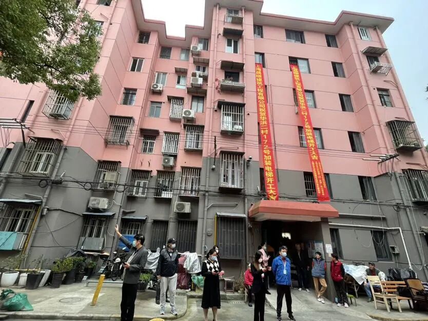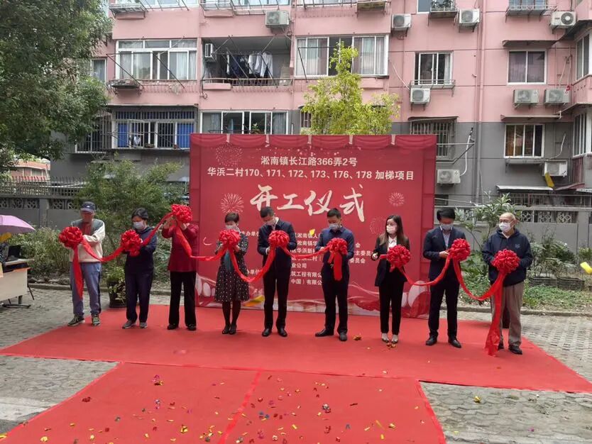 11月11日,宝山区淞南镇华浜二村的七部电梯正式开启加装模式,这里的居民不久后就可以用上期盼已久的电梯了,迎来属于他们的“电梯时代”。
