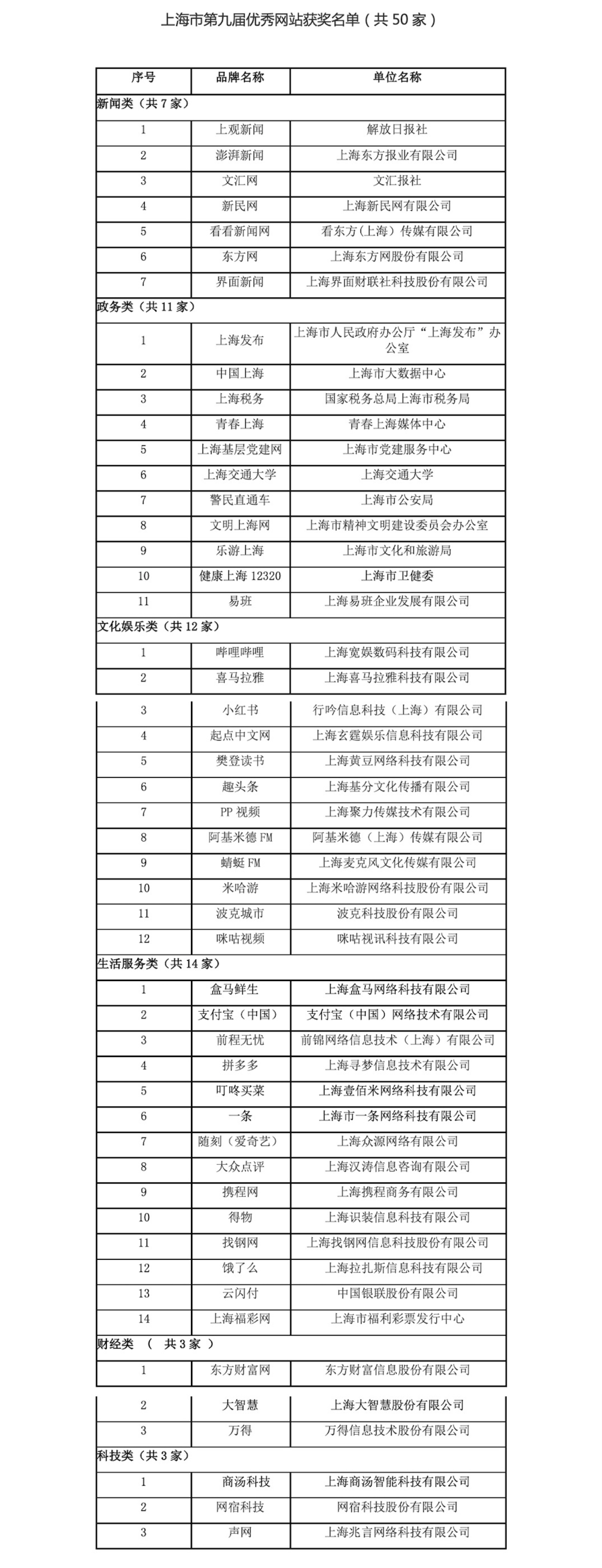 2022年11月13日,上海市第九届优秀网站评选结果正式揭晓,界面新闻等50家网站获得本届“上海市优秀网站”称号。