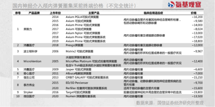 在联盟集采实施之后,“弹簧圈”终端价格或将进一步降低。