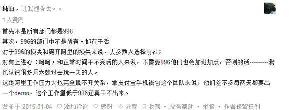说起996模式,据传最早始于阿里巴巴。只不过据知情员工透露,阿里当初并没有要求所有部门都在996,更多技术团队接近的是995。而实行996的部门多是由于要推新业务或是立了军令状有比较高业务目标,比如当初来往与微信之争下的所有无线团队,这种996都只是战时状态下的非长期产物。再加上钱没少给,员工的抵制情绪较低。