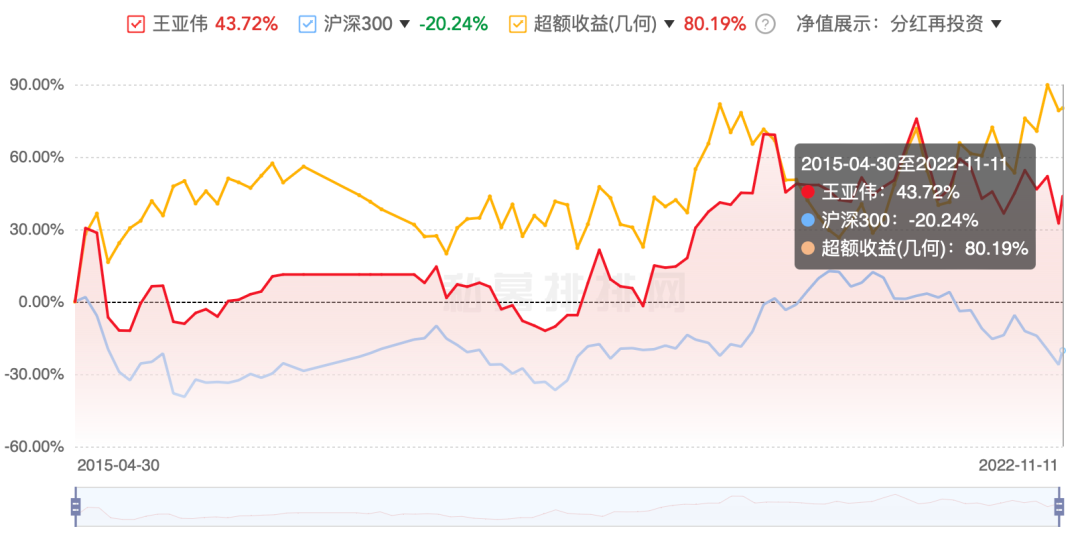 另外,王亚伟最近两年(2020.11.30至今)的累计收益仅为-3.11%,其产品并未表现出极为优秀的抗跌能力。