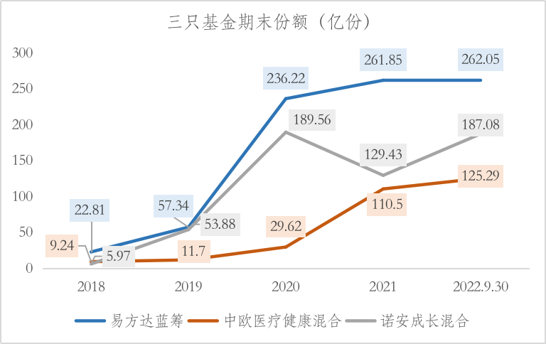 基民想要抄底博弈,开始小幅回流。与去年底相比,易方达蓝筹三季度末的份额增长了2000万份,中欧医疗健康混合A增长了14.79亿份,诺安成长混合增长了57.65亿份。