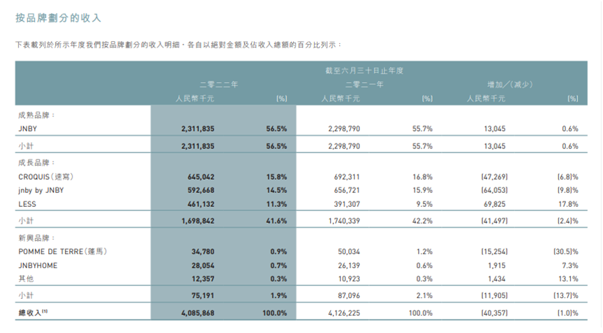 新兴品牌方面,JNBYHOME收入增长7.3%至2805万元,而POMME DE TERRE蓬马则下跌30.5%至3478万元。
