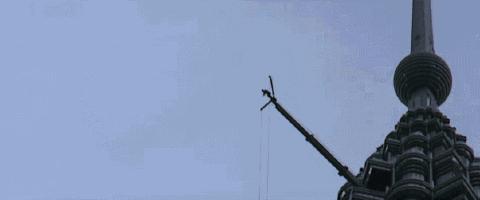 他惊世骇俗的一跳,是从当时世界第一高大楼吉隆坡石油双塔(塔高451米)上跳下,令人惊讶的不仅仅是刷新了定点跳伞的最高纪录,而是这一跳是非法的
