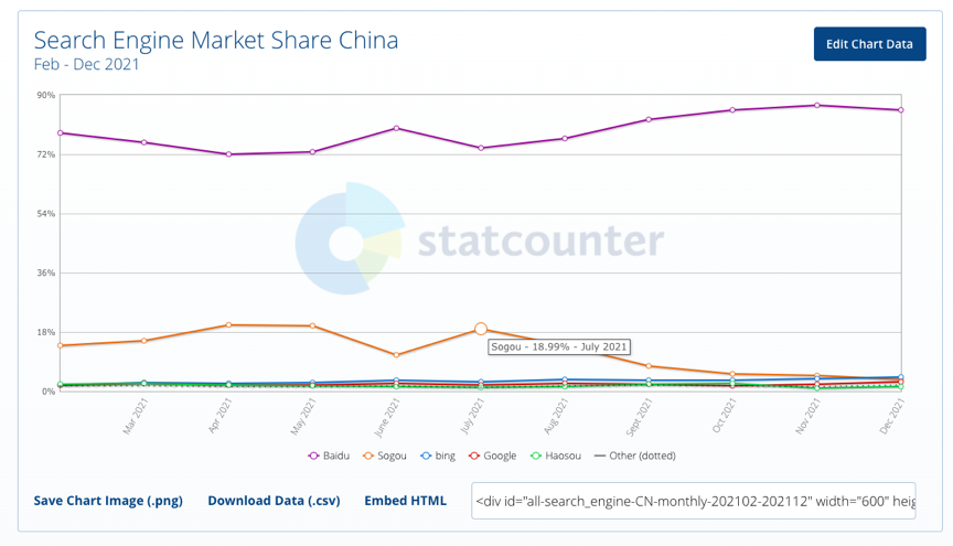 中国搜索引擎市场份额,图/StatCounter