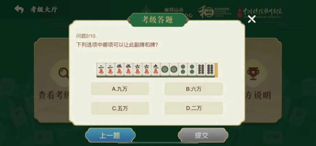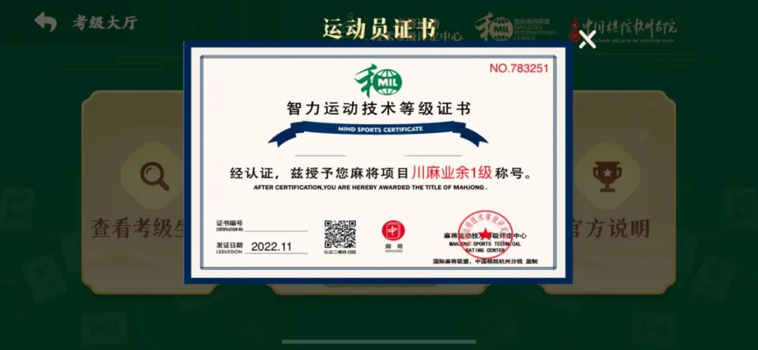 登陆、答题、注册运动员、再答题……一套操作下来不足五分钟,就可以申请成为川麻业余 1 级运动员。考题多为常识性选择题,包括国际麻将联盟的基本情况(如国际麻将联盟的主办比赛是世界麻将运动会、世界模特大赛、马拉松比赛还是世界大胃王比赛?)和川麻的基本规则,正确率 70% 以上,即可通过。可以说,是最没有门槛的运动员之一。