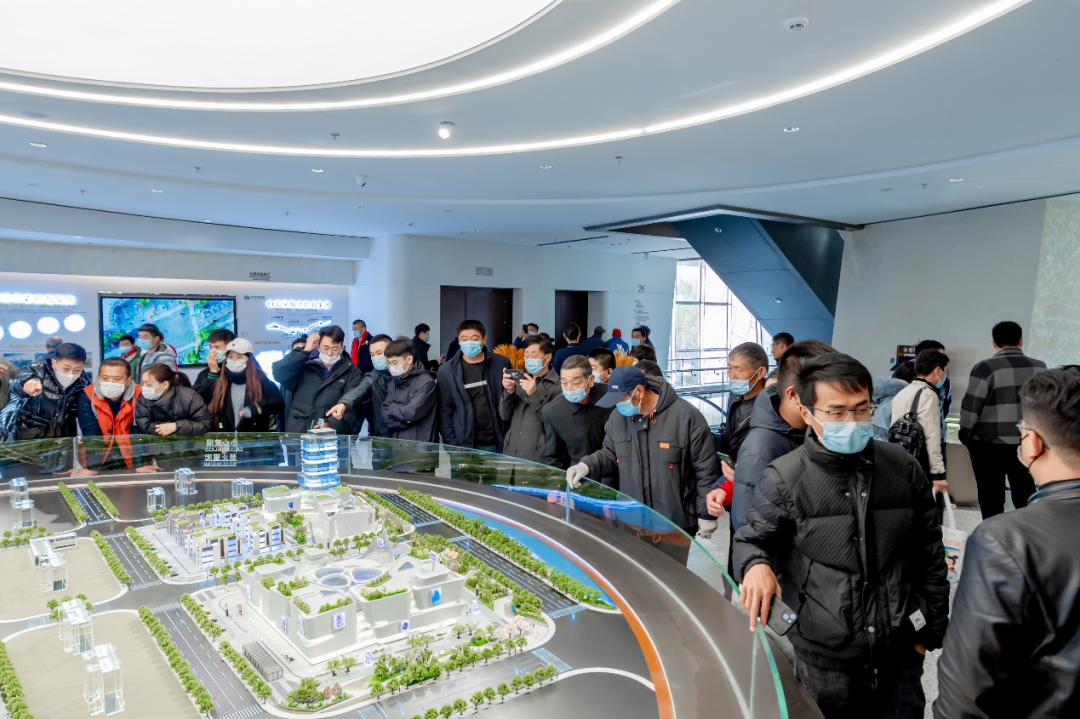 高新区党工委委员、副主任李涛,临空经济区发展中心主任孟林,临港街道办事处书记周培利,国家设计大师、大卫国际建筑设计有限公司董事长申作伟,山东绿地泉控股集团董事长、总裁刘岷,济高控股临空公司董事长王祖垒,济南市房地产业协会执行副会长李刚、秘书长于泉,山东宜和宜美家居科技有限公司董事长蒋伟红,山东国宸装饰工程有限公司董事长李庆军,山东恒信建设监理有限公司项目总监郭士涛,绿地泉集团文化顾问赵建凯,绿地泉集团高管和部分中层负责人,媒体代表和广大关心支持稼轩文旅城项目的客户,以及中建二局、北京城建、上海谷际园林等参建单位代表齐聚美好生活服务中心,共同见证稼轩蝶变。