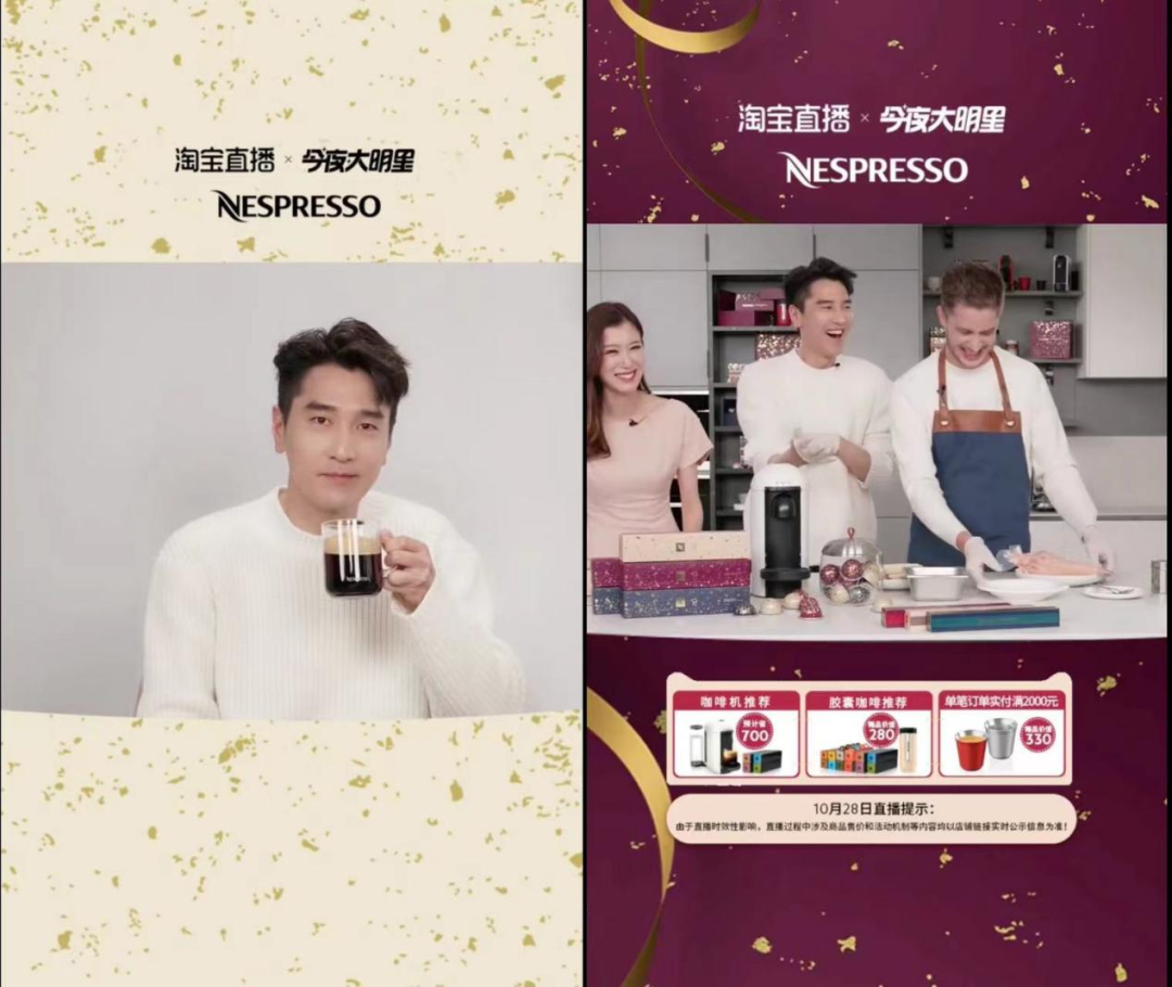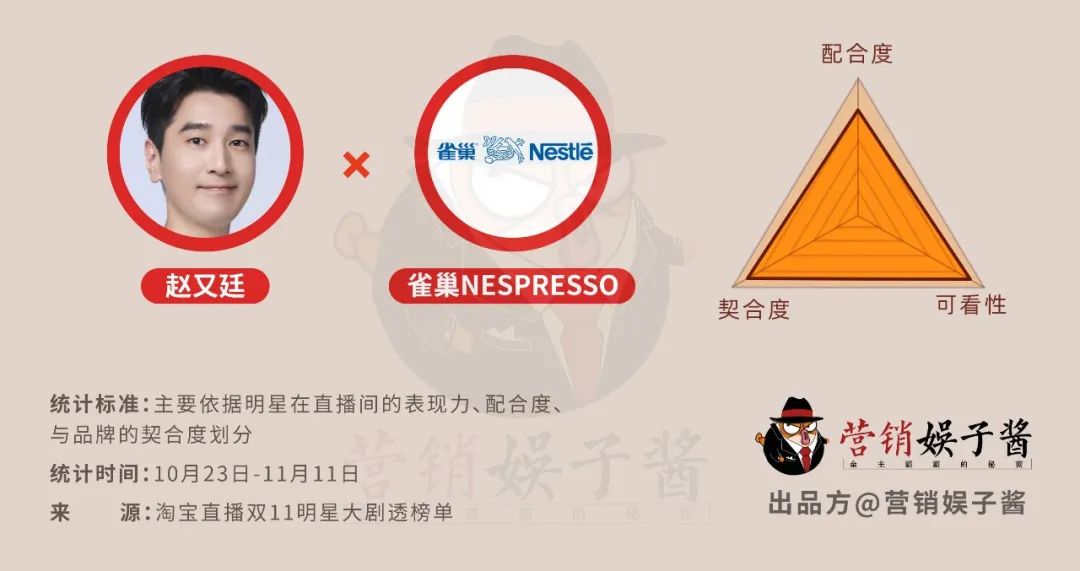 雀巢旗下的Nespresso浓遇咖啡与品牌大使赵又廷在双11期间的直播堪称巧妙与精致并存。