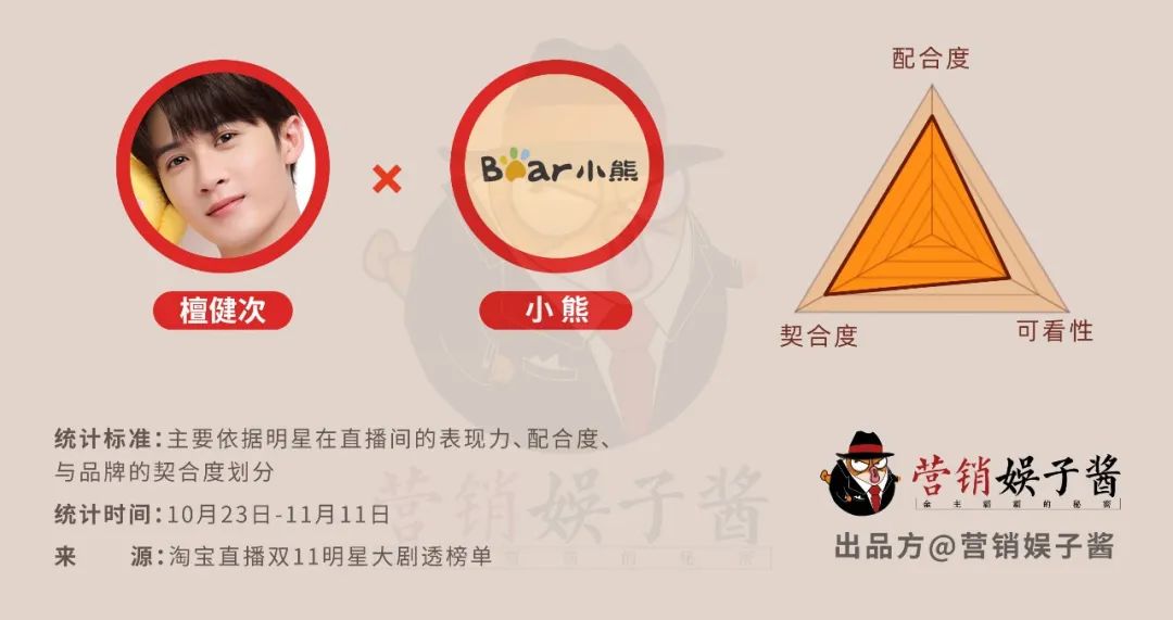 娱乐资本论矩阵号营销娱子酱(ID:marketingyuzijiang)对这些明星直播表现进行了分析,统计从10月23日-11月11日期间所有参与带货的明星。