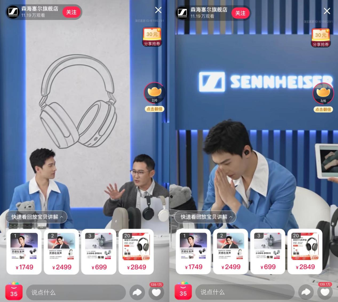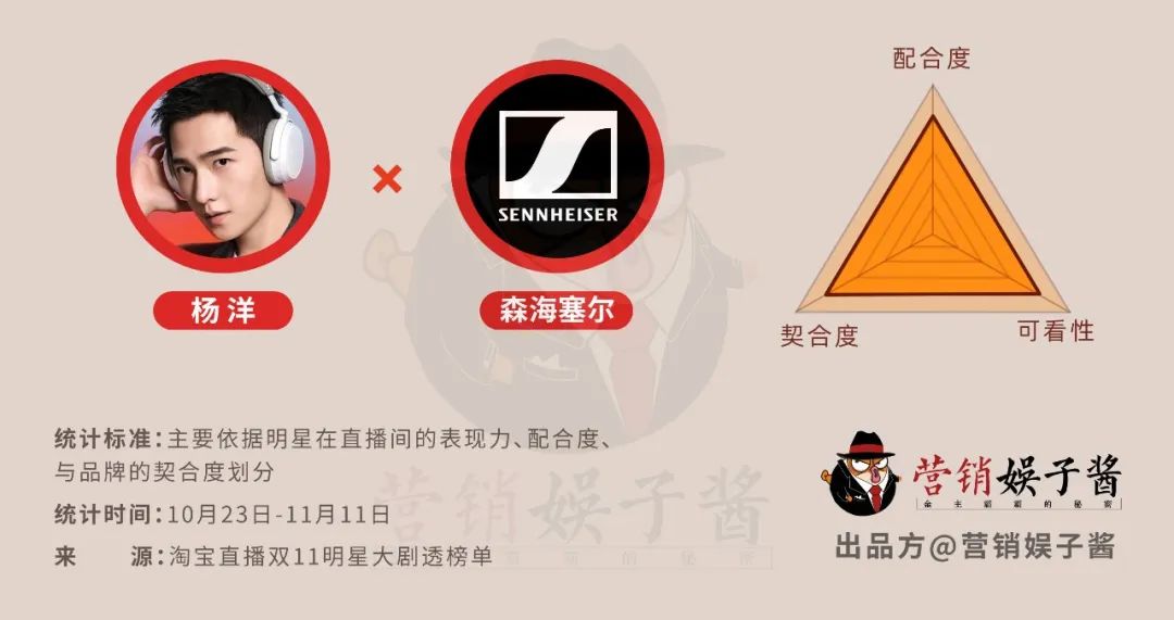 整体来看,森海塞尔的整场直播做到了自然不浮夸,且能够让用户有一定的代入感,杨洋的优质形象,也非常好地兑现了其作为"产品模特"的价值,让耳机不仅是数码产品,更可以是时尚单品,而他的粉丝基本盘,也为品牌带来了一定的破圈效应。