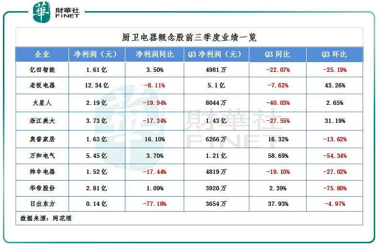 反映到股市上,11月以来,厨卫电器板块持续走强,相关概念股保持上涨势头。其中,老板电器累涨23.5%,亿田智能、火星人等企业涨幅居于前列。