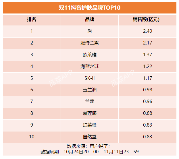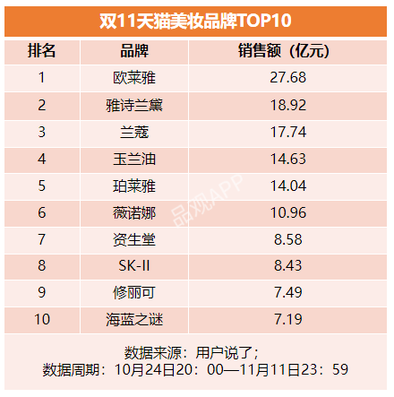 根据用户说了数据,今年双11期间,天猫平台美妆总GMV高达420亿元,销量超2亿件,TOP20品牌GMV累计超191亿元,TOP5品牌GMV均超13亿。