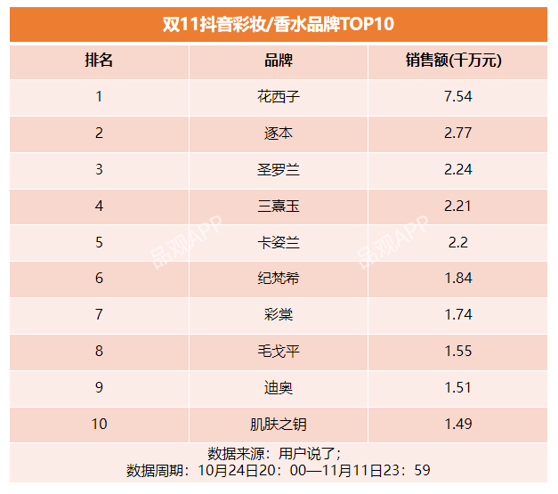 其中逐本、彩棠、毛戈平均为首次上榜。据彩棠战报,今年双11期间,彩棠在抖音平台的GMV较去年同比增长超过380%,其品牌自播间也登上抖音彩妆品牌自播账号榜NO.3。
