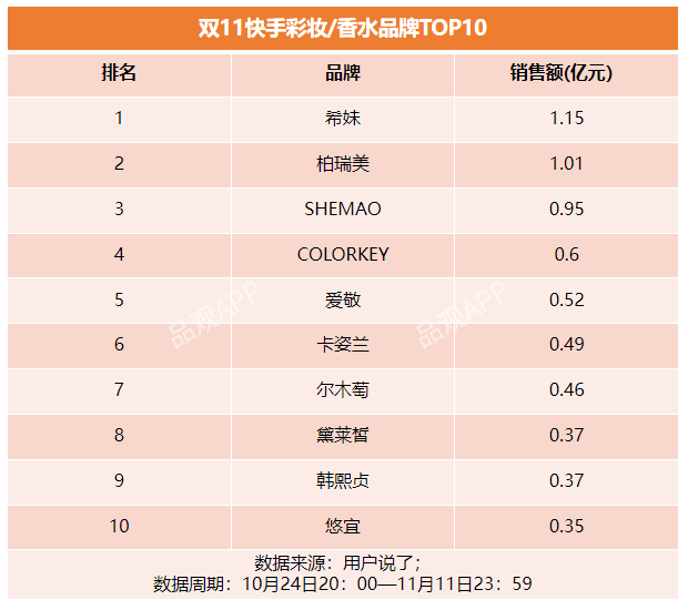 虽然前10席位被“快品牌”霸榜,但是欧诗漫、珀莱雅、谷雨均在快手发力,进入TOP20。
