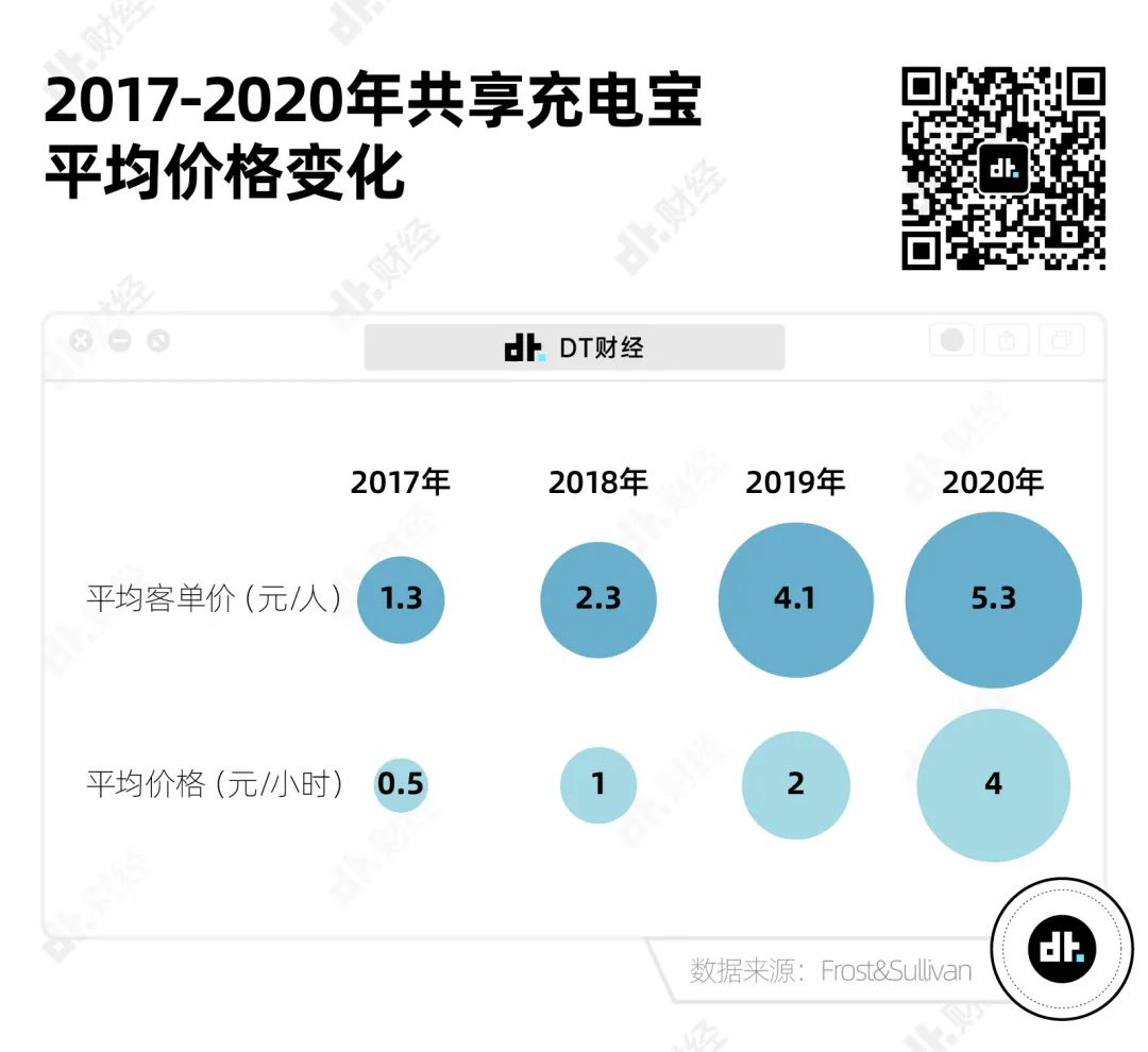 到底涨得有多快呢?据沙利文报告不完全统计,从2017年到2020年,共享充电宝每小时的租赁价格从0.5元上涨到了4元。