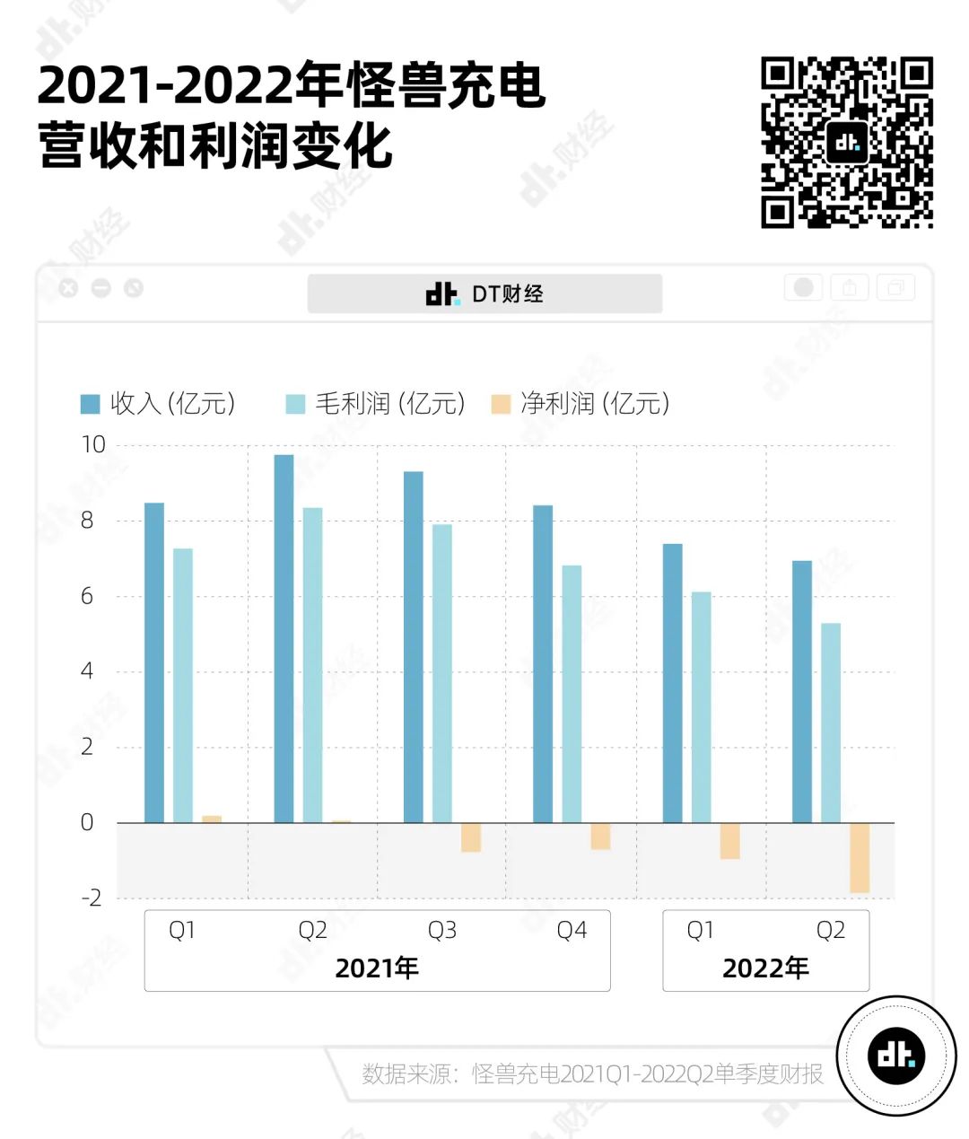 截止2022年第二季度,怪兽充电已经持续亏损4个季度。