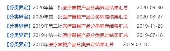 《未来迹Future Beauty》观察到,自2017年9月4日,国家药监局正式发布新修订的《医疗器械分类目录》开始,国家药监局每隔一段时间就会对医疗器械产品的分类界定结果进行汇总更新。