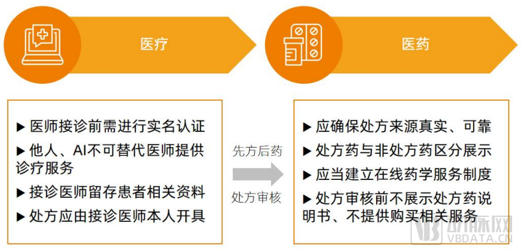 同时,两部文件都强调了先开方、后售药的严格流程,由此,互联网医院的医和药两大关键服务环节管理实现了有效衔接。