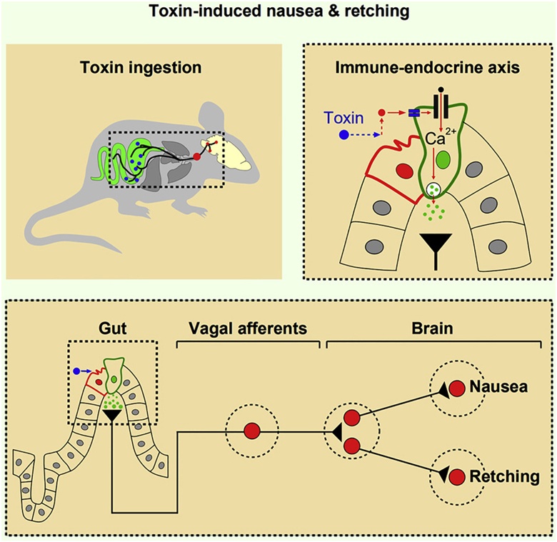 Zhiyong Xie et al. The gut-to-brain axis for toxin-induced defensive responses, Cell, 2022, doi:10.1016/j.cell.2022.10.001.