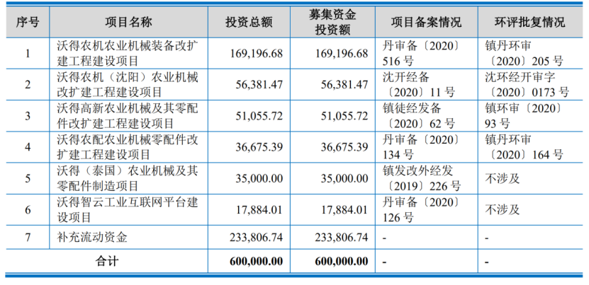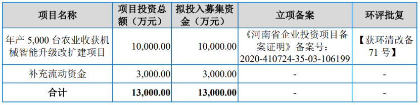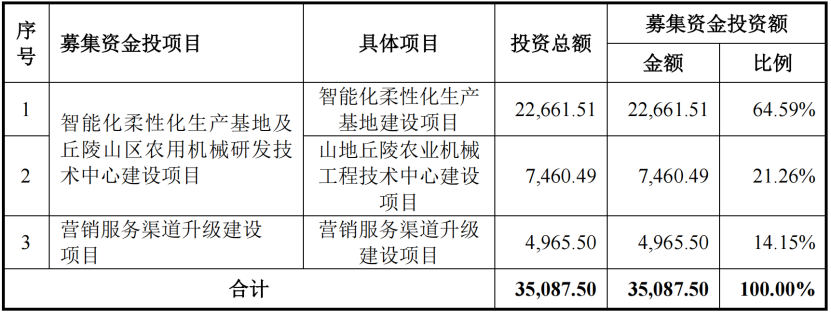 表:拟上市农机企业募资用途 数据来源:各企业招股书