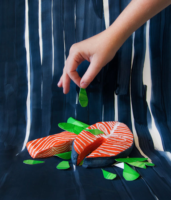 除了男朋友是自己做的之外,所有的场景,甚至是食物,也都是Mary用纸板、泡沫、黏土,亲手捏造的。