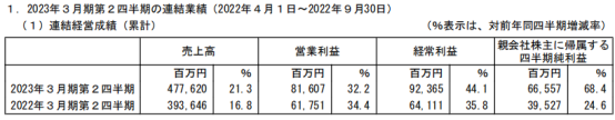 (文创潮这里需要指出的是,日本公司的财报年度大多数为4月1日至第二年的3月31日,因此财报二季度往往指的是日历年的三季度。为便于理解,本文以下部分中如无说明,文创潮按日历年进行表述。)