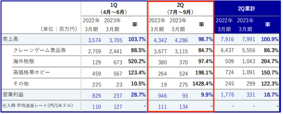 此外,娃娃机游戏市场扩大及复数人气IP商品化,维持了销售规模。