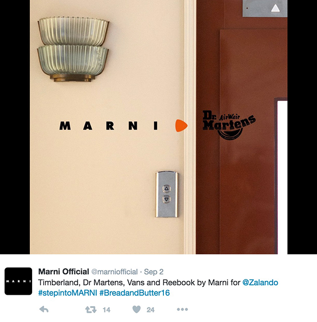 作为欧洲知名的男女时装电商,Zalando在2015年收购了Bread & Butter,并将其从B2B式的专业展会改为面向普通顾客的B2C模式。改头换面的Bread & Butter,除了吸引到像Converse、Eastpak、G-Star Raw、Selected、Lee、Levi’s、TOPSHOP、Nike,adidas等长期在Zalando上销售的品牌前来办秀、开设展位外,早先宣布与人气模特Gigi Hadid合作推出联袂系列的Tommy Hilfiger于此正式曝光了该系列,而Gigi Hadid本人也专程莅临出席;本不是Zalando直营品牌的Marni,却在其牵线下,宣布和Timberland、Dr Marten、Vans及Reebook推出一组由19款鞋履构成的Zalando独家发售的限量系列;HUGO BOSS亦决定在此发布旗下的HUGO分支品牌的2016秋冬新秀……