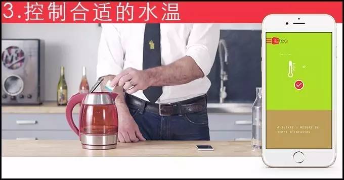 接着,开始煮水,把「茶立方」丢进水壶,内置温度计监测水温,一旦达标,通过手机 APP 第一时间通知你