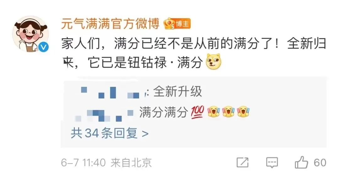元气满满官方微博还评论称,满分已经不是从前的满分了,而是“钮祜禄·满分”。