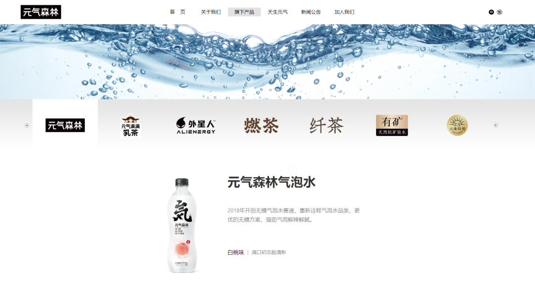 在元气森林官网,有一篇“元气大事记”。其中,品牌将2020年推出满分等产品,作为元气森林产品矩阵初见规模的标志。