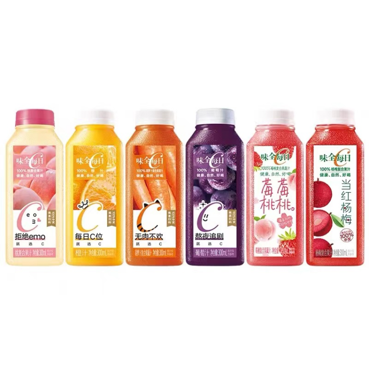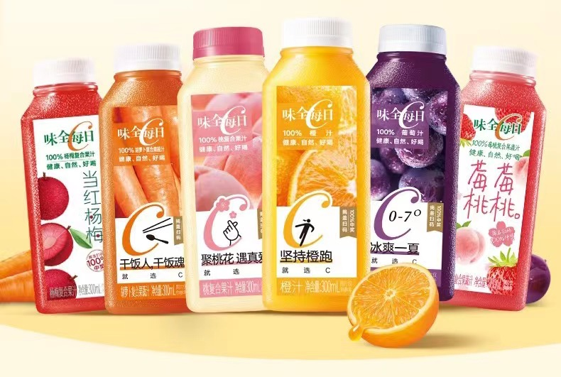 而在FC(浓缩还原果汁)100%纯果汁类型上,有着味全每日C,主打低温100%纯果汁/果蔬混合汁。这个自2001年就在上海成立的100%冷藏果汁品牌,在华东地区市占率曾超过40%。