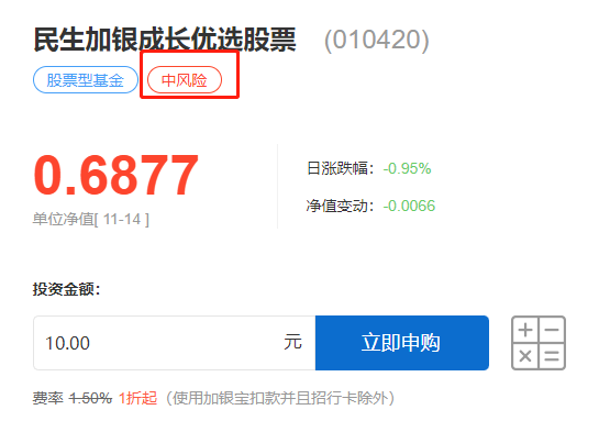 在民生加银基金的官网,该基金被划分为“中风险”。