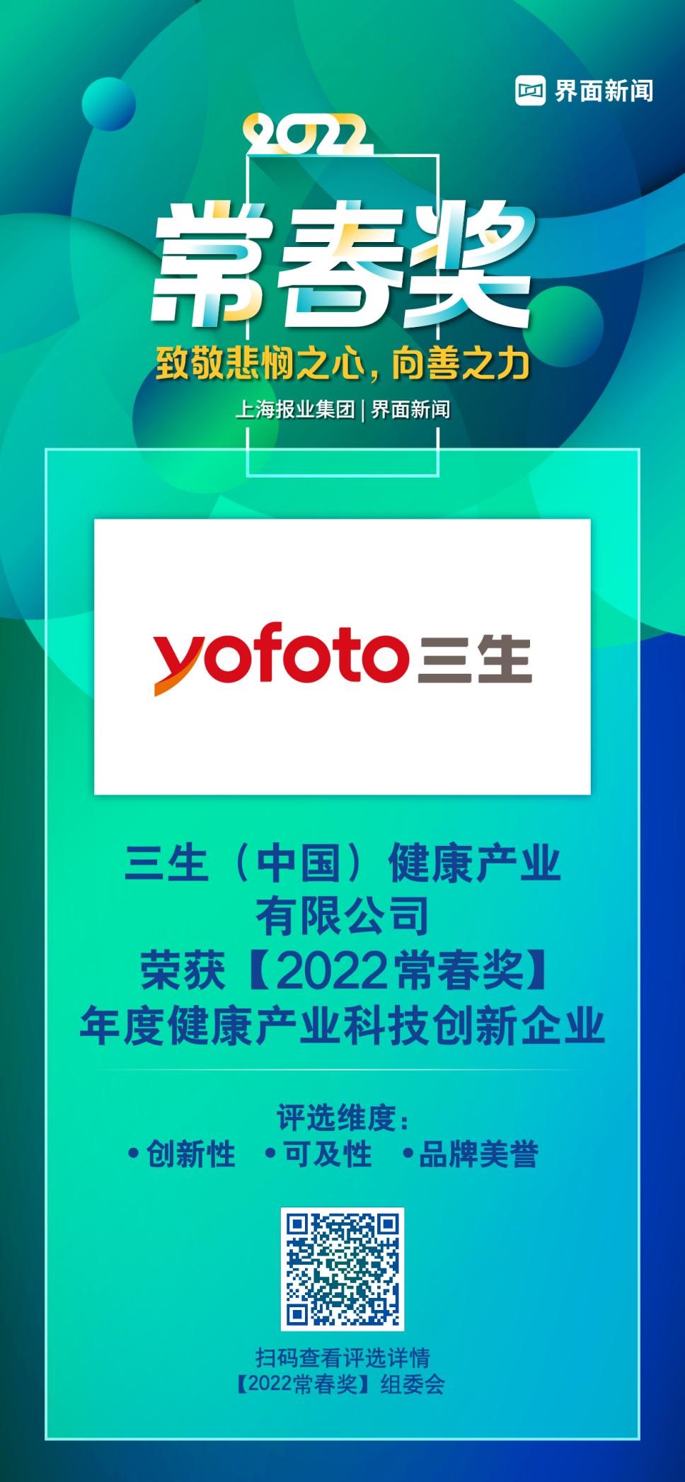 由上海报业集团 | 界面新闻主办的2022【常春奖】评选聚焦大健康行业的升级和变化,依托健康领域专家、学者、采编,携手专业机构,综合社会各界的意见与建议,通过榜单形式,对在中国境内开展业务经营的优秀大健康企业进行表彰,致敬悲悯之心、向善之力!