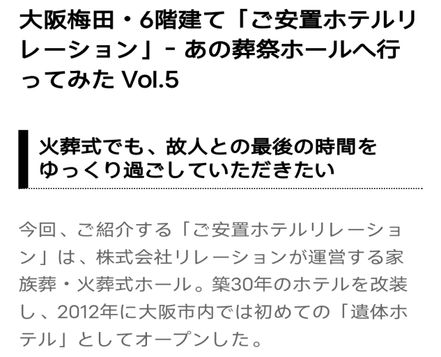大阪一家30年的老酒店改成遗体宾馆的新闻