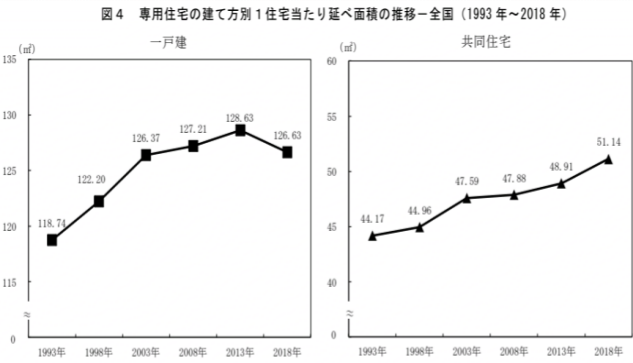 从图中可知,在日本,传统一户建的面积近年来在减少,而包括公寓在内的共同住宅则稳定增长