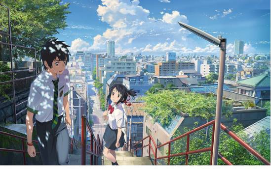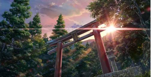 除了故事上的进步外,新海诚继《秒速五厘米》《言叶之庭》之后第三次把故事发生的背景放在东京,再一次了描绘了让人心醉的都市风景。那是让人忍不住重新审视都市高楼的难以置信的美感。与此同时,《你的名字》也呈现了美丽的乡村大自然风景,到处是温暖的空气感和梦幻般的光影。