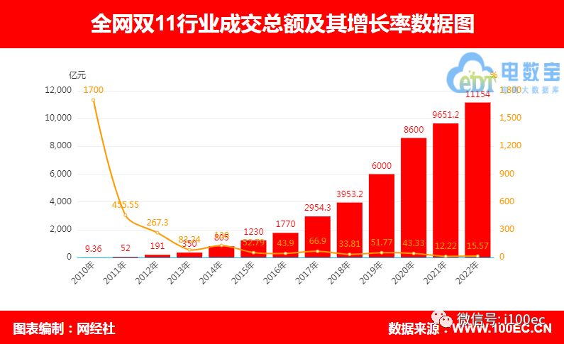 据星图数据统计,2022年双11,全网GMV达到11154亿元,其中,直播电商领域GMV为1814亿元,占比达到16.3%,同比增长146.1%,统计平台为抖音、点淘、快手。