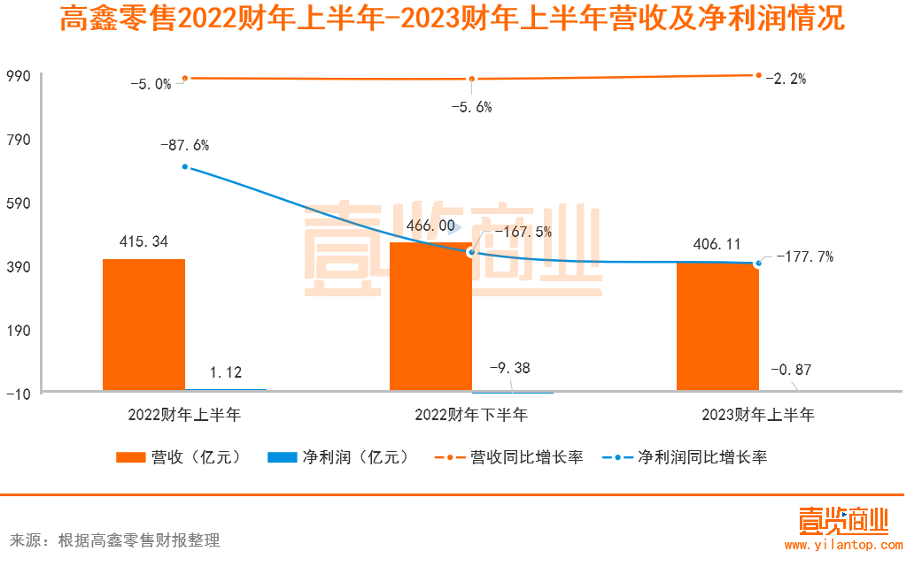 11月15日晚间,高鑫零售发布了截至9月30日的2023财年上半年业绩报告。报告期内,高鑫零售的营收、净利润和大店等核心指标表现严峻,具体看: