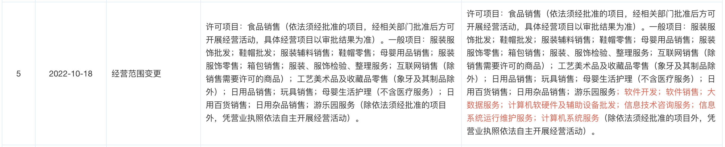界面新闻查阅天眼查发现,悦安商管于10月18日有过一次经营范围变更。该次变更后,公司经营业务新增了“软件开发;软件销售;大数据服务;计算机软硬件及辅助设备批发;信息技术咨询服务;信息系统运行维护服务;计算机系统服务”。