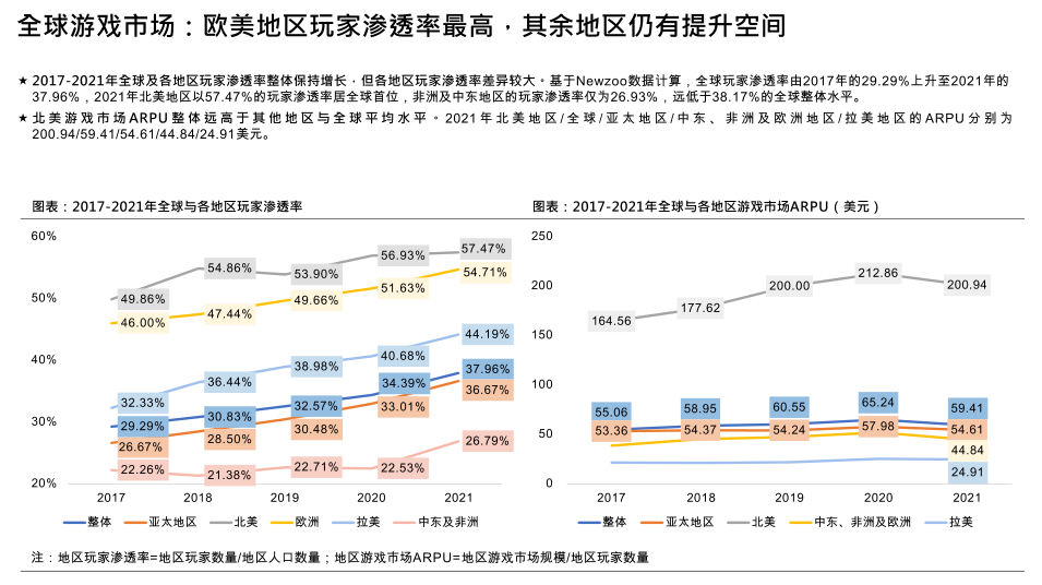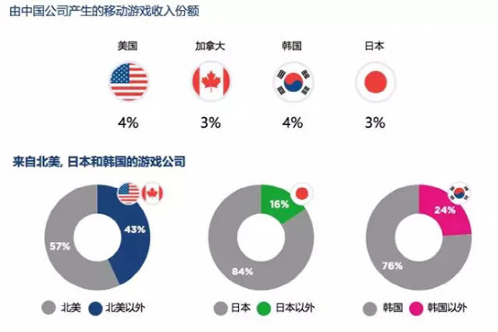 根据当时Google和NewZoo合作发布的《2016年全球游戏市场报告》显示,2016年全球移动游戏市场总规模达369亿美金,亚太地区以216亿美元的收入份额成为全球最大的移动游戏市场,中国移动游戏收入居全球首位。移动游戏正成为整体游戏市场中增长最快、收入最高的细分市场。北美移动游戏市场竞争开放,非北美移动游戏公司在北美市场上的占比43%,而中国游戏公司目前在北美市场的份额仅占比3%~4%,相对较低。