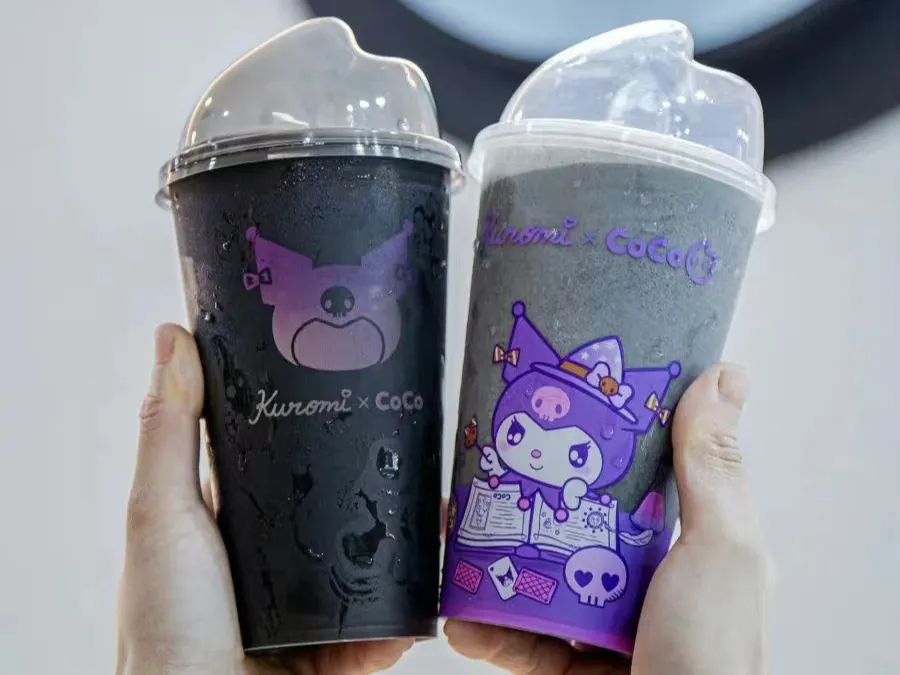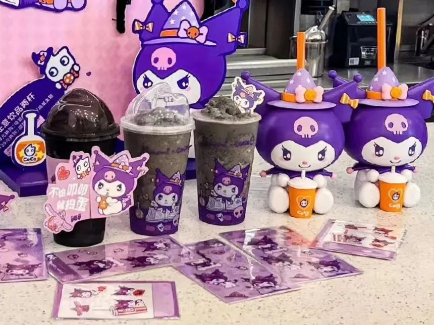 CoCo都可的黑芝麻系列和Kuromi联名,官方头像也换成了紫色的联名照,并在北京、杭州、广州等地开出联名主题店;还推出联名的万圣节产品、库洛米杯子、吸管等周边产品,很受年轻人喜爱。