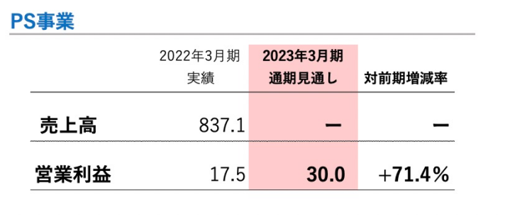 圆谷公司2022年二三季度对于【PS事业】业务板块明年业绩的预期
