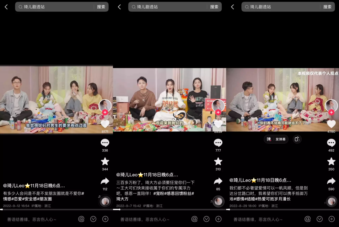 值得一提的是,琦儿此前有一个琦妙夜谈的栏目,邀请团队内的助播、模特一起聊感情、内容科普、福利放送等等,本质就是做一个个人综艺节目或者趣味访谈节目,通过内容吸引更多不了解琦儿的用户,关注她,从而看她的直播。该栏目受到粉丝的一系列好评。