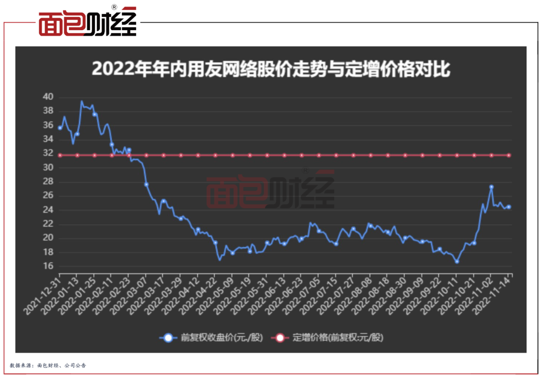 2022年7月27日该笔定增股份解禁,当日用友网络收盘价(前复权,下同)为21.36元/股。以定增价格至解禁日收盘价计算,该笔定增浮亏32.78%,浮亏总额约17亿元。